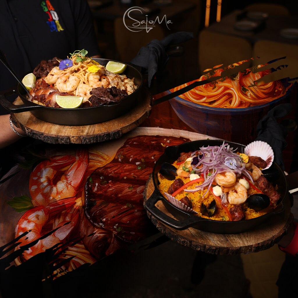 Saffron rice, seafood, Dominican sausage, vegetables, and a touch of aioli (serves two).