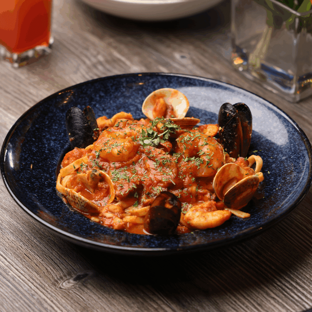 Fettuccine pasta tossed with shrimp, calamari, octopus, mussels, and clams, all simmered in our signature house-made pomodoro sauce.